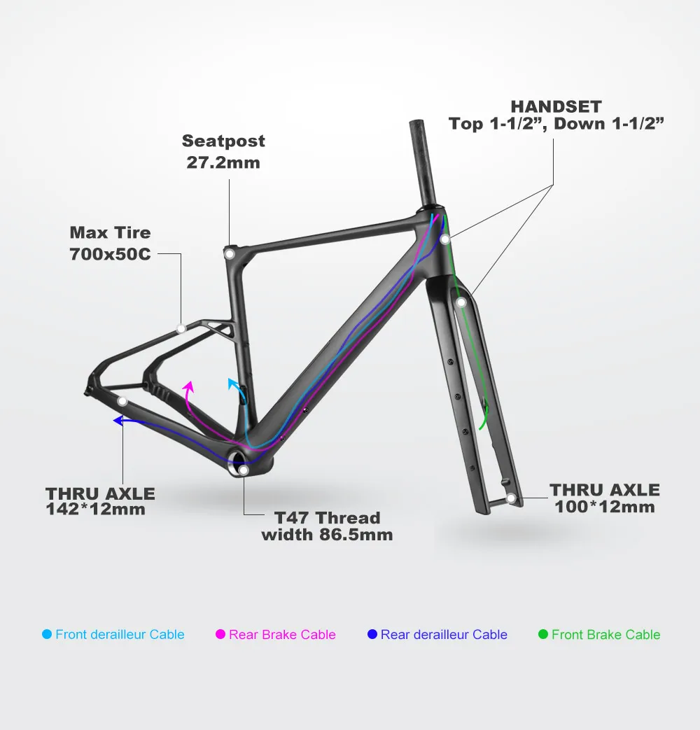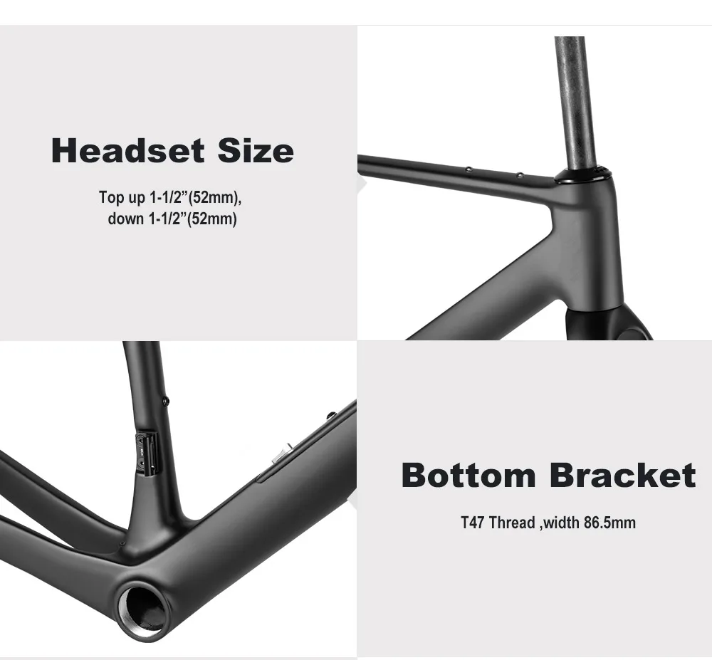 Bottom Bracket: T47 Thread, BB shell width 86.5mm