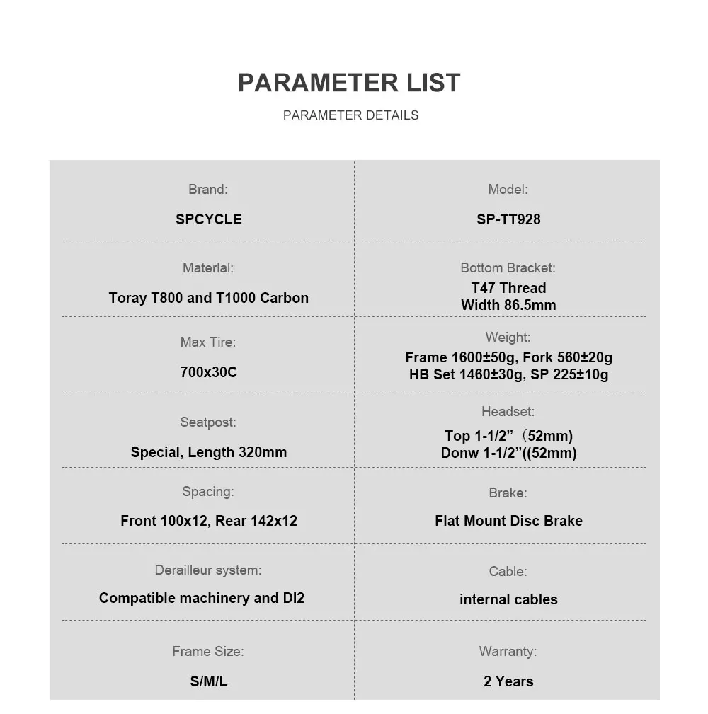 Spcycle TT928 Aero Carbon Time Trial Bike Frame UDH Hanger T47 Bottom Bracket Full Integrated Cable Time Trial Frameset